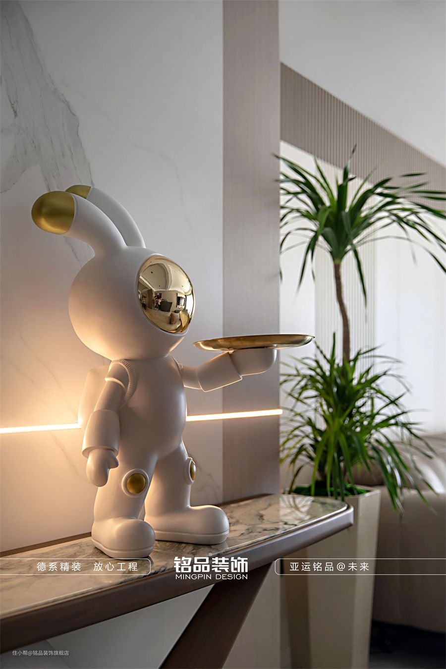 玄关处使用线性灯带,连通客厅空间,增强各空间的联系。