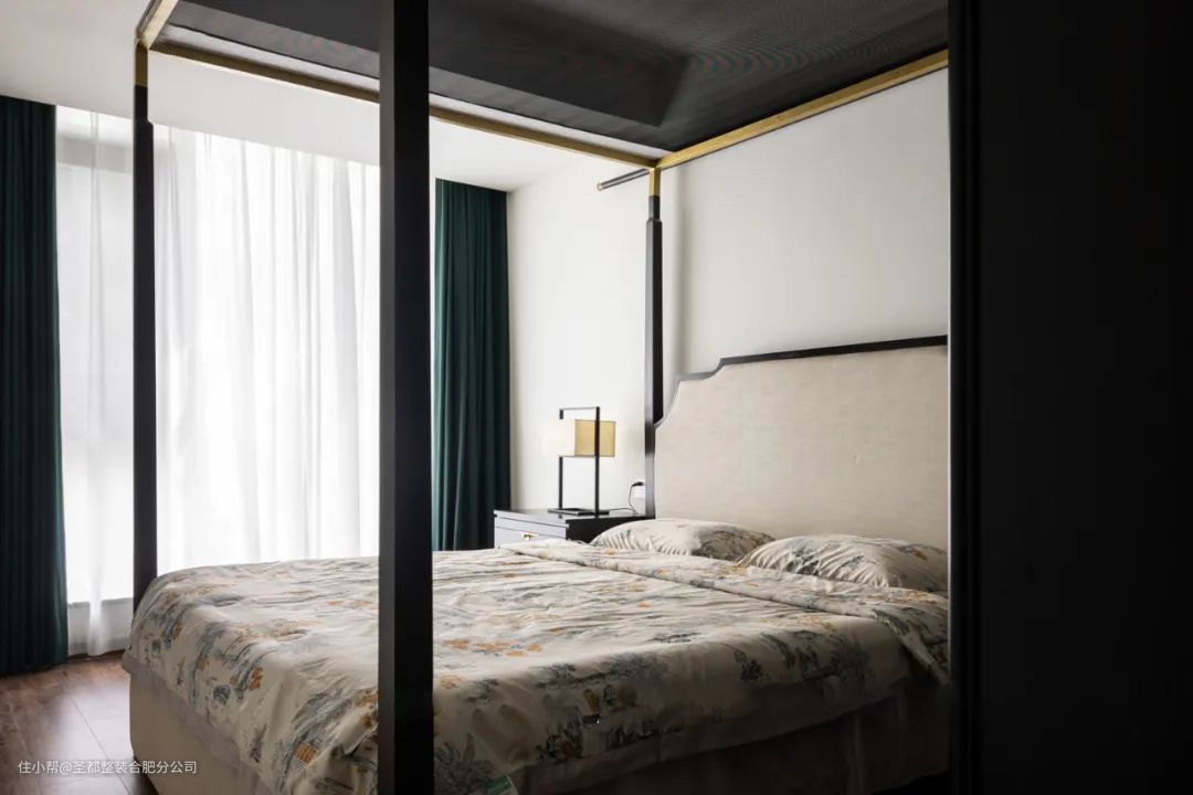 次卧采用复古的木饰面吊顶,线条偏中式,阐述优雅的中式之美。