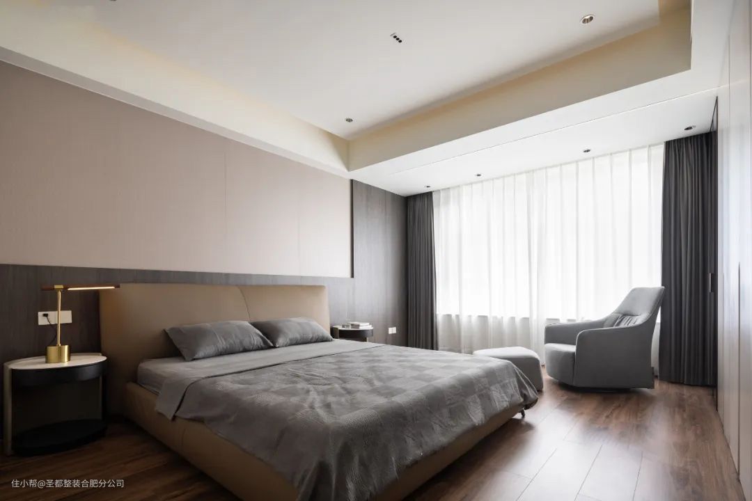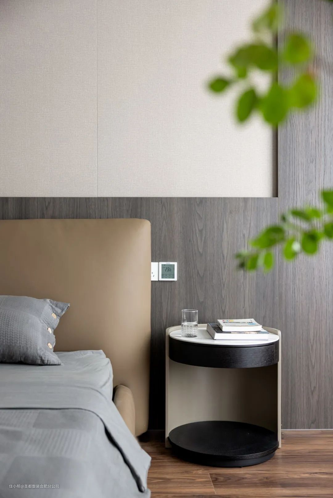 主卧做了整整两大组衣柜,足够顶得上一个8-10㎡的衣帽间了,既省去了一个衣帽间,又合理利用了空间。主卧保持纯粹的色调,又结合自然治愈的材质,营造安然惬意的居住空间。