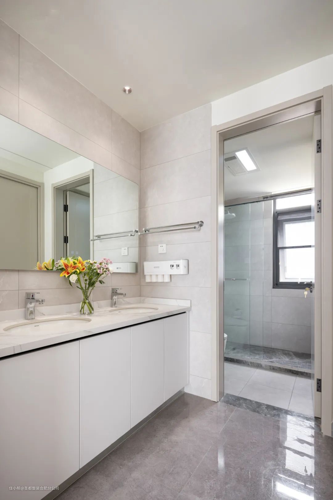 主卫三分离设计,双台盆解决了多人口家庭“洗漱撞车”问题,合理动线规避了细菌交叉,卫生简洁。