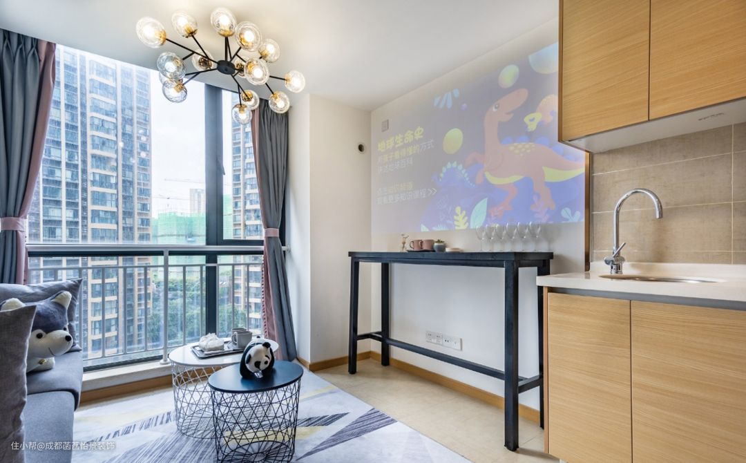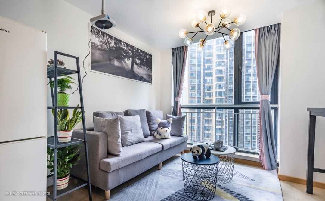 客厅的空间不大但好在整体的采光很好,大面积的窗户为室内带来充足的采光。没有装电视机,投影仪的使用,更舒适大气、