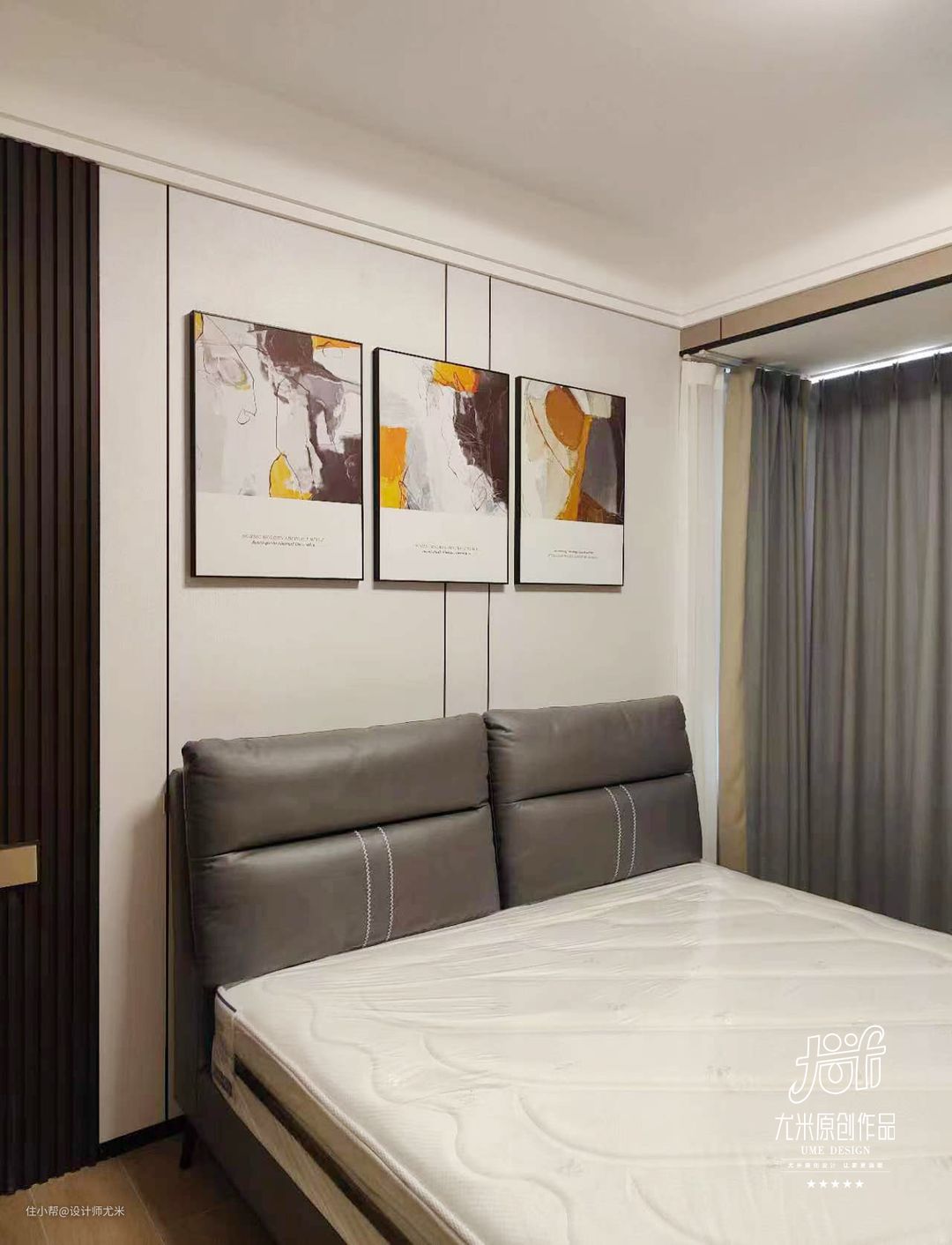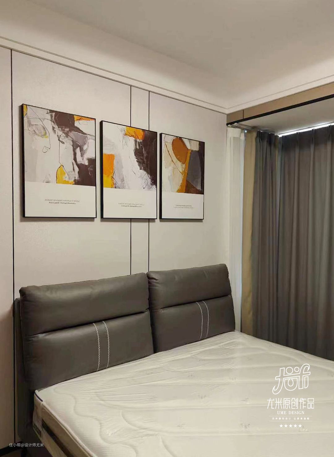 床头背景与主卧室一样的设计,挂画选择也是根据整个空间的色系来考虑。