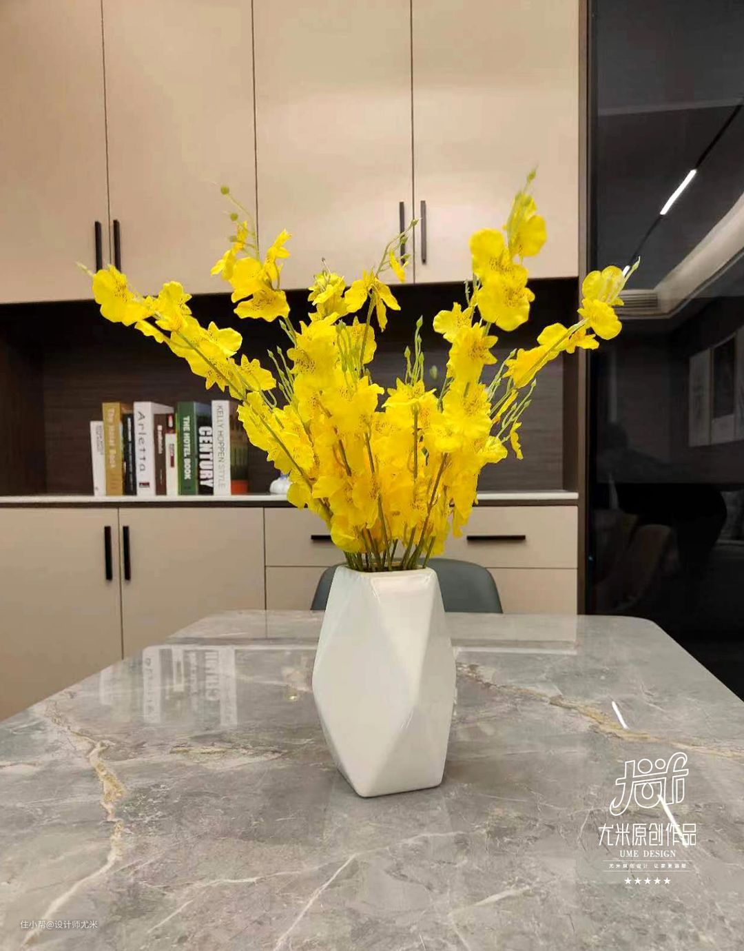 餐厅作为全家人就餐的地方,需要点仪式感,一束黄色的跳舞兰提升了整个餐厅的格调。