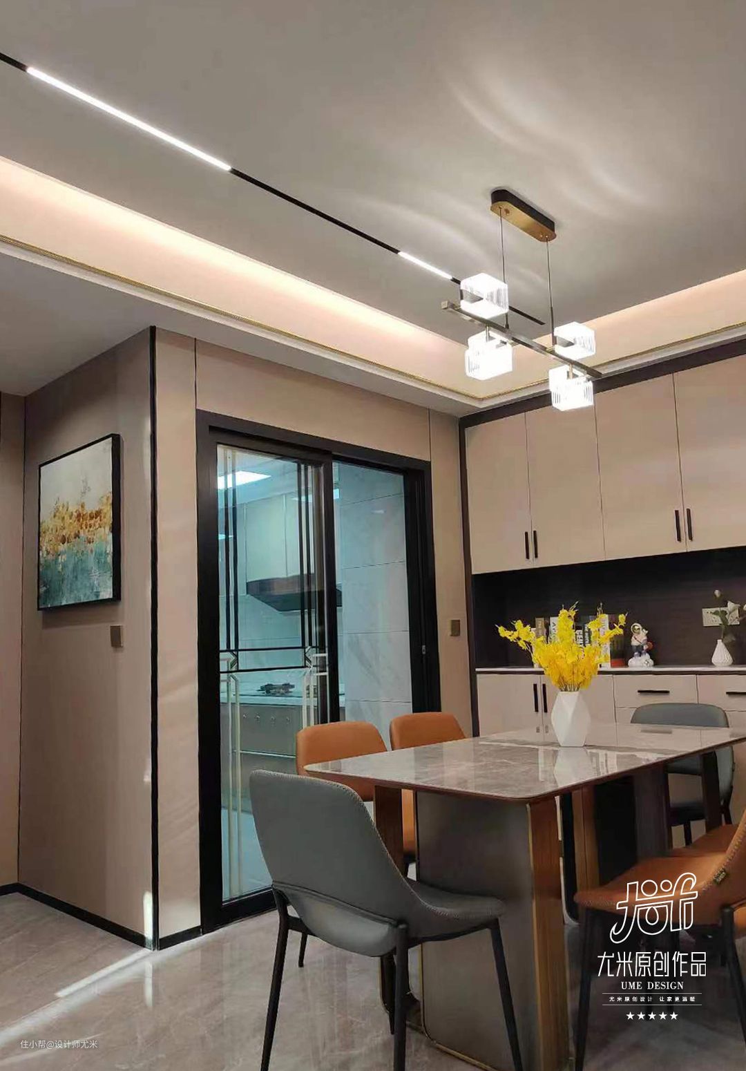 写在最后 整个装修过程,就是一个信任的过程。屋主从陌生到完全的信任,也是设计师的人品征服。在这里要感谢屋主的完全信任,没有屋主的信任和配合,也很难打造出屋主喜欢,满意的效果。 其实装修房子选择设计师很关键,预算也很关键。前期把自己的预算跟设计师沟通好,后期设计师一定是根据预算合理的搭配整个空间的材料,设计出最理想的效果。 本案最出彩的一定是物主认可的木饰面护墙板,墙面材质非常重要,连接天与地,完善丰富整个空间的设计。奶咖色木饰面大面积使用,加上85根8厘宽黑色铝合金线条,让整个空间充满温馨又更具线条感。 无主灯的设计瞬间让整个空间更具时尚现代感,让整个空间更开阔舒适,很多人担心影响层高,其实比有主灯层高更显高。 无主灯设计要注意的是:前期选择好的轨道预埋,磁吸灯轨道的钱不要省,买到差的轨道,后期坏了需要拆吊顶。