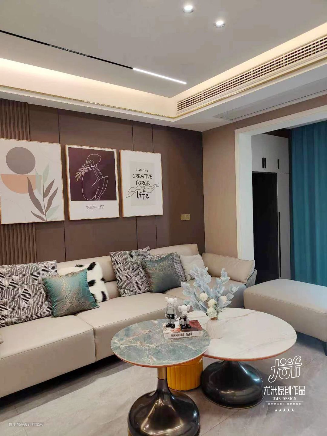 经过跟屋主的深入沟通后,选择现代简约加一点轻奢元素作为主风格。 原始客厅只有28个平方,客厅作为以后生活的主要活动区,太小会让人很压抑,于是把原来到休闲阳台的推拉门拆除,采用断桥铝封窗,把休闲阳台纳入到客厅。 客厅由原来的28平方变成现在的35平方,瞬间让整个客厅变得更开阔大气。 色彩选择暖色调,让整个家更温馨。