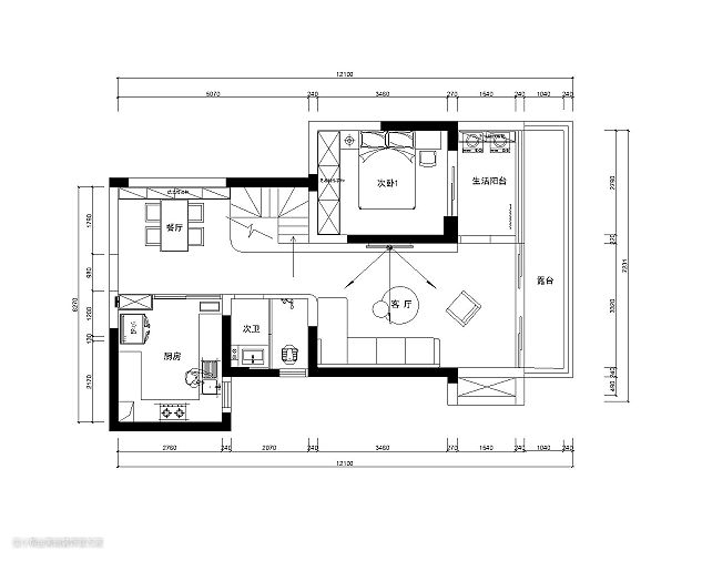 平面布置图 设计亮点: 根据业主需求,把原有进门楼梯改到房间中间,楼梯采用鱼肚白大理石铺贴,这样改进门的空间更加宽敞,餐厅位置跟厨房更近,将上二楼的动线缩短。白色大理石楼梯更突显质感。生活阳台改到对面客厅并与阳台打通,让空间更加宽敞。保留原有露台,没有封窗压抑视野更开阔。