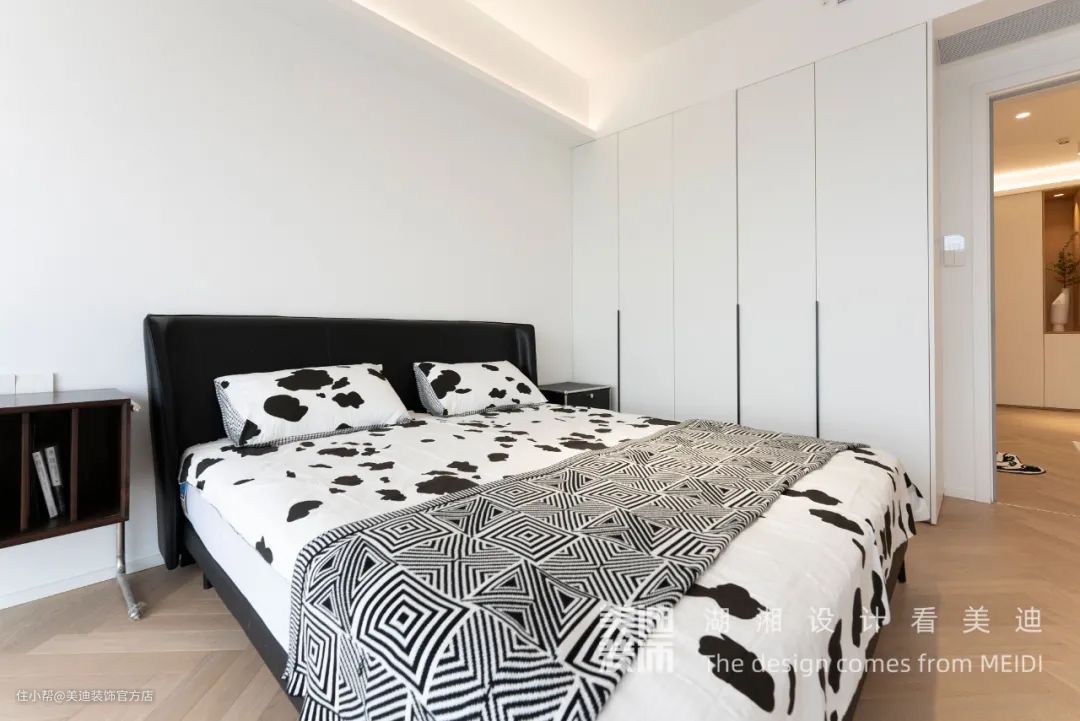 卧室设计延续了其他空间一贯明亮干净的风格,低饱和度、低情绪感的颜色空间,能让人更加放松,有助于睡眠。