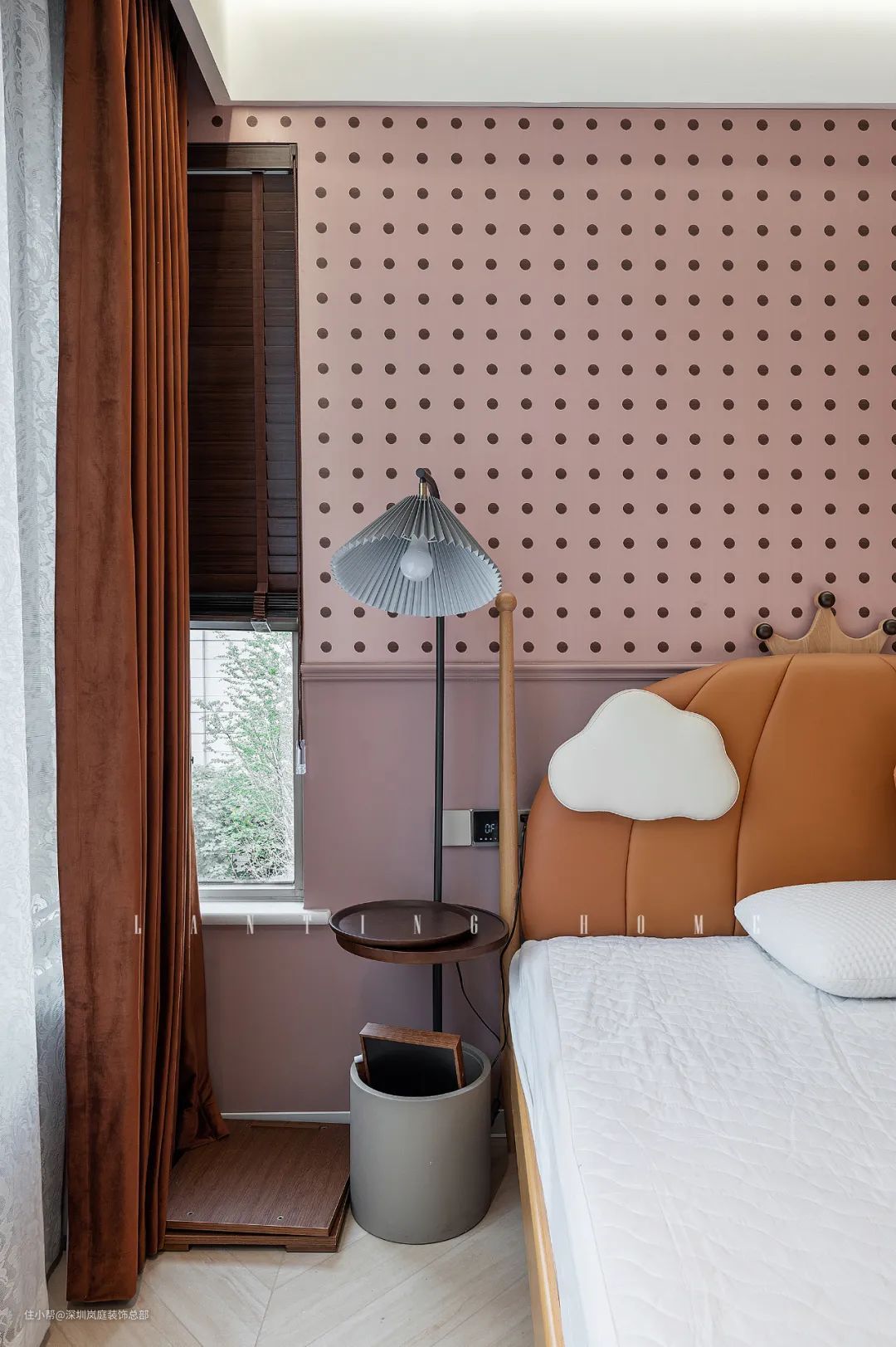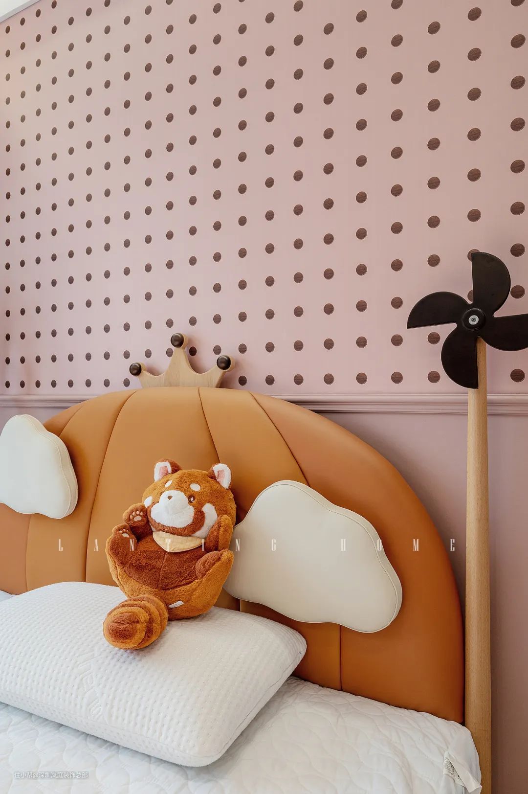 儿童床的选择是比较有童趣感的,南瓜城堡床给孩子足够的安全感,温馨有趣的造型让孩子独自居住的接受度更高。