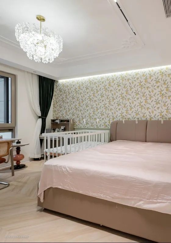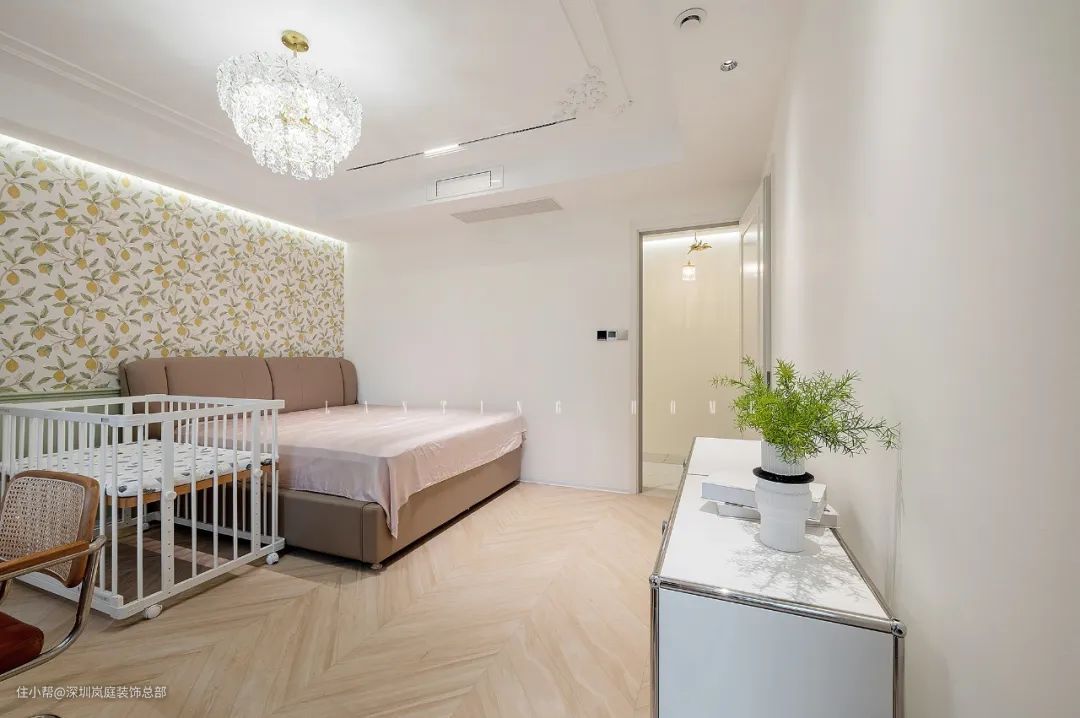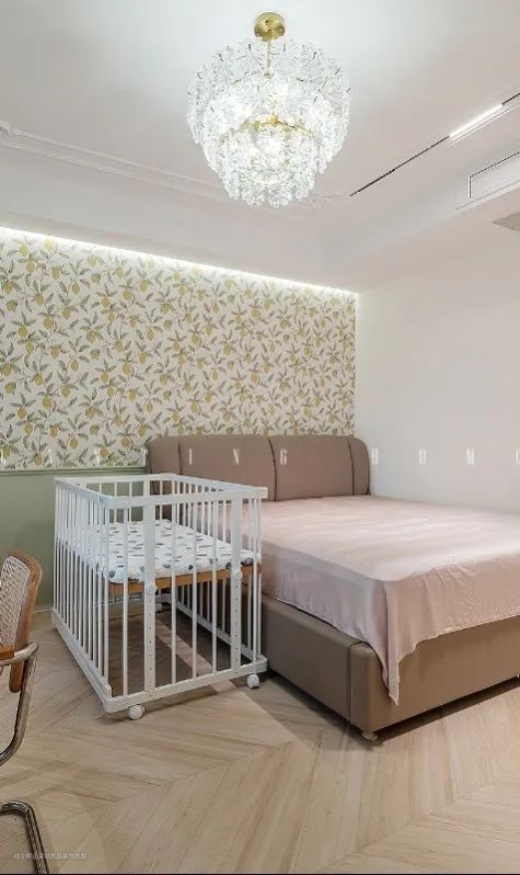 由于有了二胎,需要在卧室放置婴儿床,卧室的动线都尽量保证流畅。其余墙面选择留白,恰到好处地配色比例,不会让空间复杂化,在视觉上居住感受更佳。