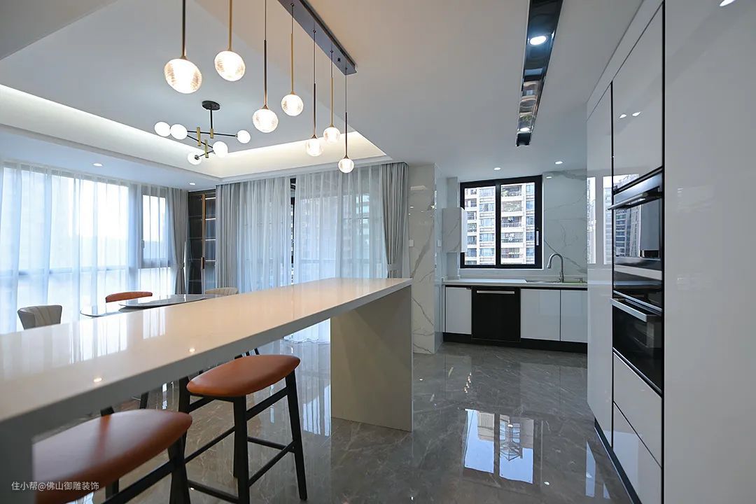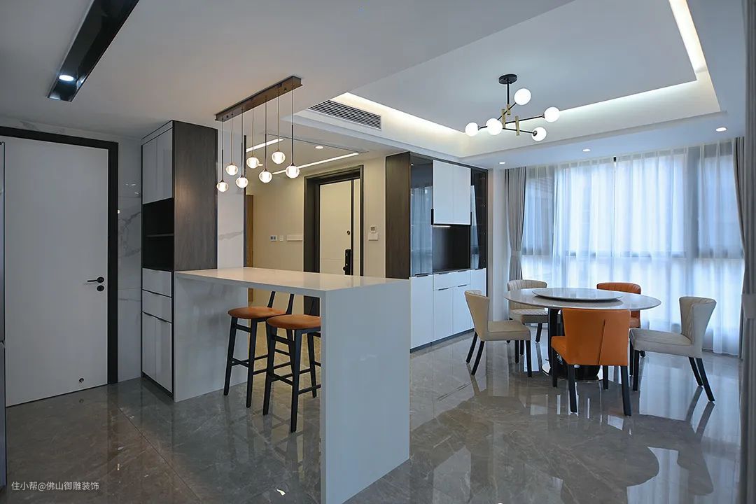 可别小瞧这些空间的改造和重构哟,冰箱往哪塞,吧台做多宽,餐桌椅如何摆,一件件不起眼的小细节背后,凝结了太多太多设计师的心血。一分一毫的精准测算尺寸、一点一滴的贴心考虑和细微调整,才成就了最后的恰到好处,一切都刚刚好!