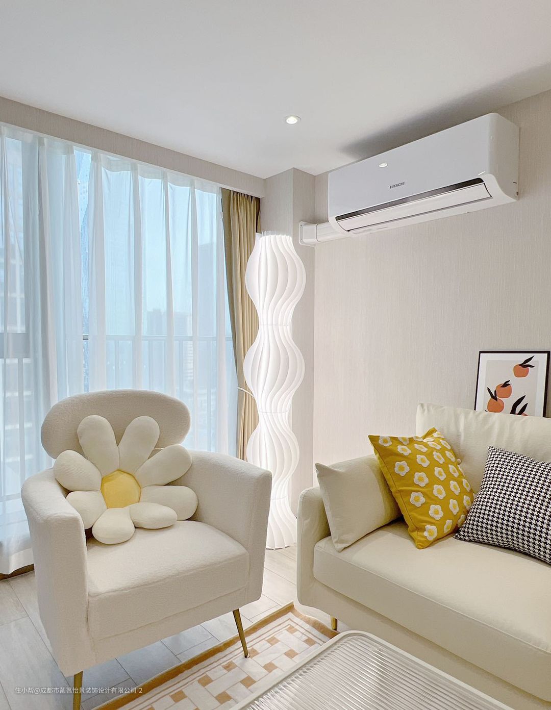 客厅的空间中,没有做吊灯的设计,暖色调的墙面漆搭配着一侧的定制收纳柜,增加空间的收纳空间,满足日常生活的使用。