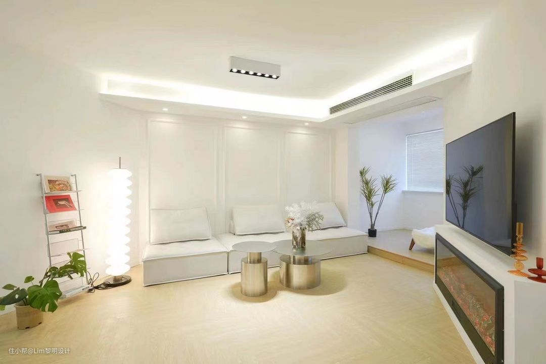 简单的无主灯设计,没有复杂的装饰背景墙,整体是温馨的奶白色调。