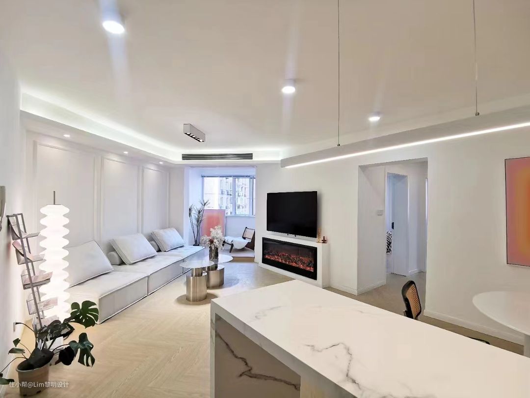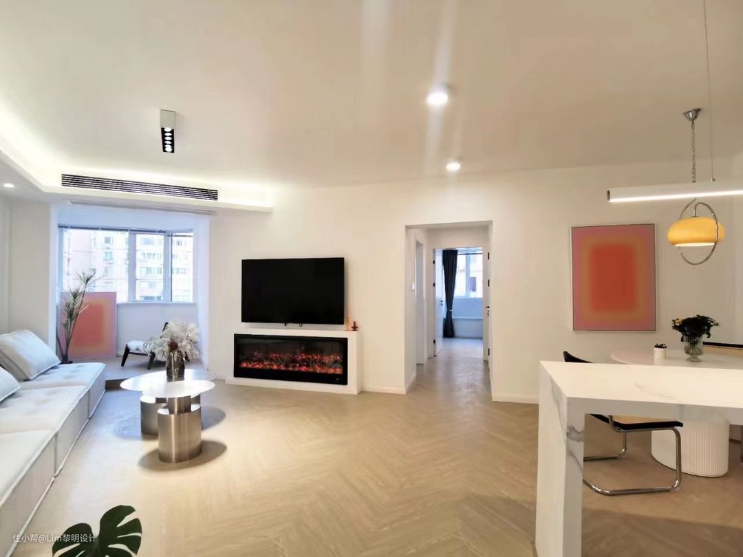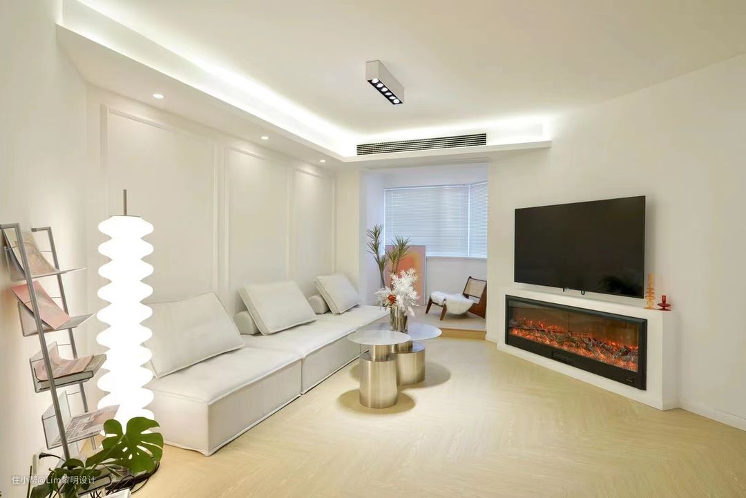 壁炉是女主人一直想要拥有的装饰,我们主要以石膏板作为框架设计,提前预留好电源就可以严丝合缝的内嵌在其中。