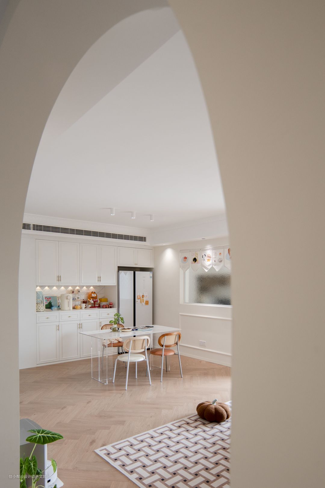 说在前面 这是一家二手房改造,10年前的老楼盘。3~5人居住,所以保留了三个房间。 屋主对美好生活的精致追求,并自己DIY了部分单品,简直是把效果图搬回家~ 摒弃了传统的电视墙,打破常规客厅布局,让心心念念的壁炉找到了归属。 追求自然轻快的色调,回家时能把所有烦恼抛之脑后~ 常住人口:3~5人; 设计师:卢文凯; 后期摄影:Ray 部分主材:V派橱柜,大自然地板 基本需求: 1.需要一个独立办公区; 2.客厅需要风管机,全屋地暖,客餐厅都用木地板 3.儿童房想要个上下床 4.厨房收纳功能尽可能多 5.不要电视墙,客厅尽量显得通透明亮