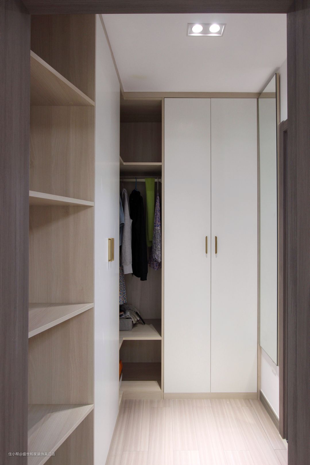 进门左手边,增设了一个衣帽间,采用步入式设计,极大提高了居住体验,令起居生活更便利。