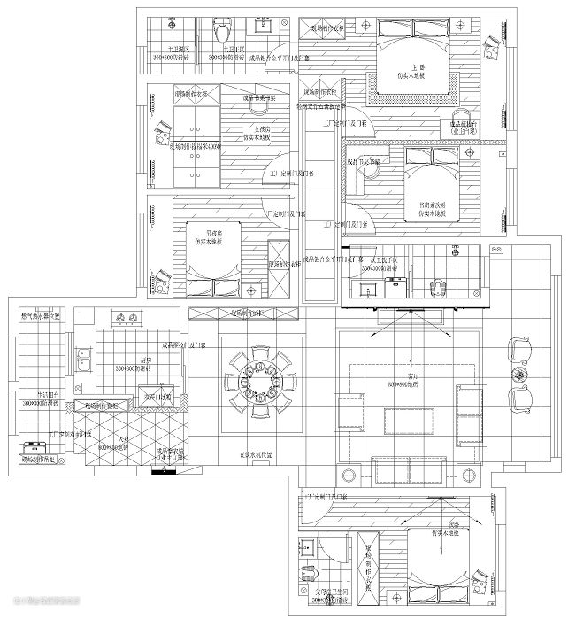 户型分析 居室原结构为四室两厅,户型较为周正,无明显缺陷,但因主人一家人口较多,居住空间不够,所以设计师将原主卧室进行改造,将其一分为二,设计上多出一间卧室,满足生活需求。