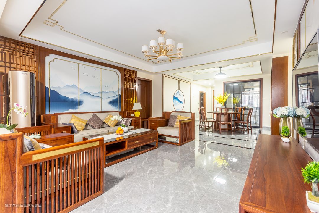 水墨诗意,古韵悠然。这个住宅的主人钟爱中国传统文化的博大精深,热爱东方美学所传递出来的优美意境。所以跟设计师沟通时,要求一定要将家居设计成中式风格,而且业主一家三代同堂,四室两厅的格局不能满足一家人的居住所需,而居住的原主卧空间较大,设计师将原主卧室一分为二,多设计出一个房间,满足主人一家所需,非常实用。整体的设计当中,将中式元素自然应用于居室空间的每个角落,让细节彰显东方美学的意境,令居住者舒适而惬意。