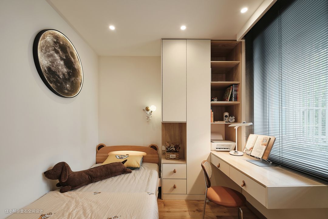 儿童房内部布局,一张儿童房,书桌衣柜一体化,满足小朋友生活学习。