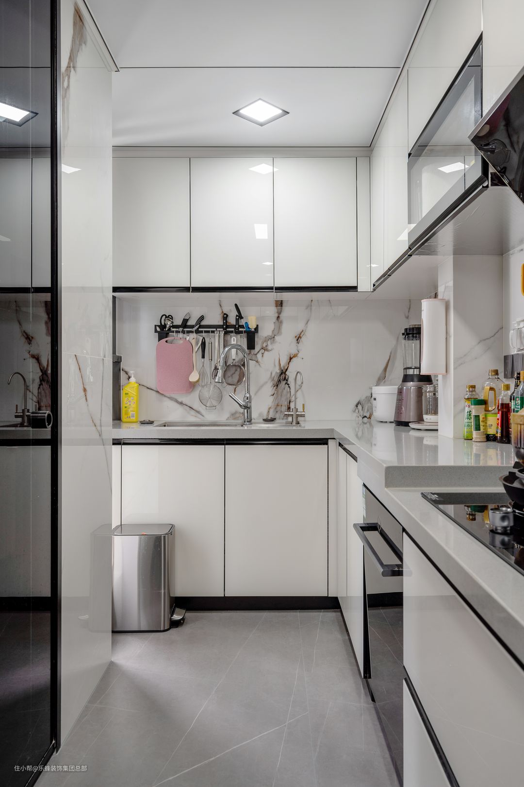 将阳台纳入厨房使用后,厨房面积得到增加,厨房空间顿时开阔不少。