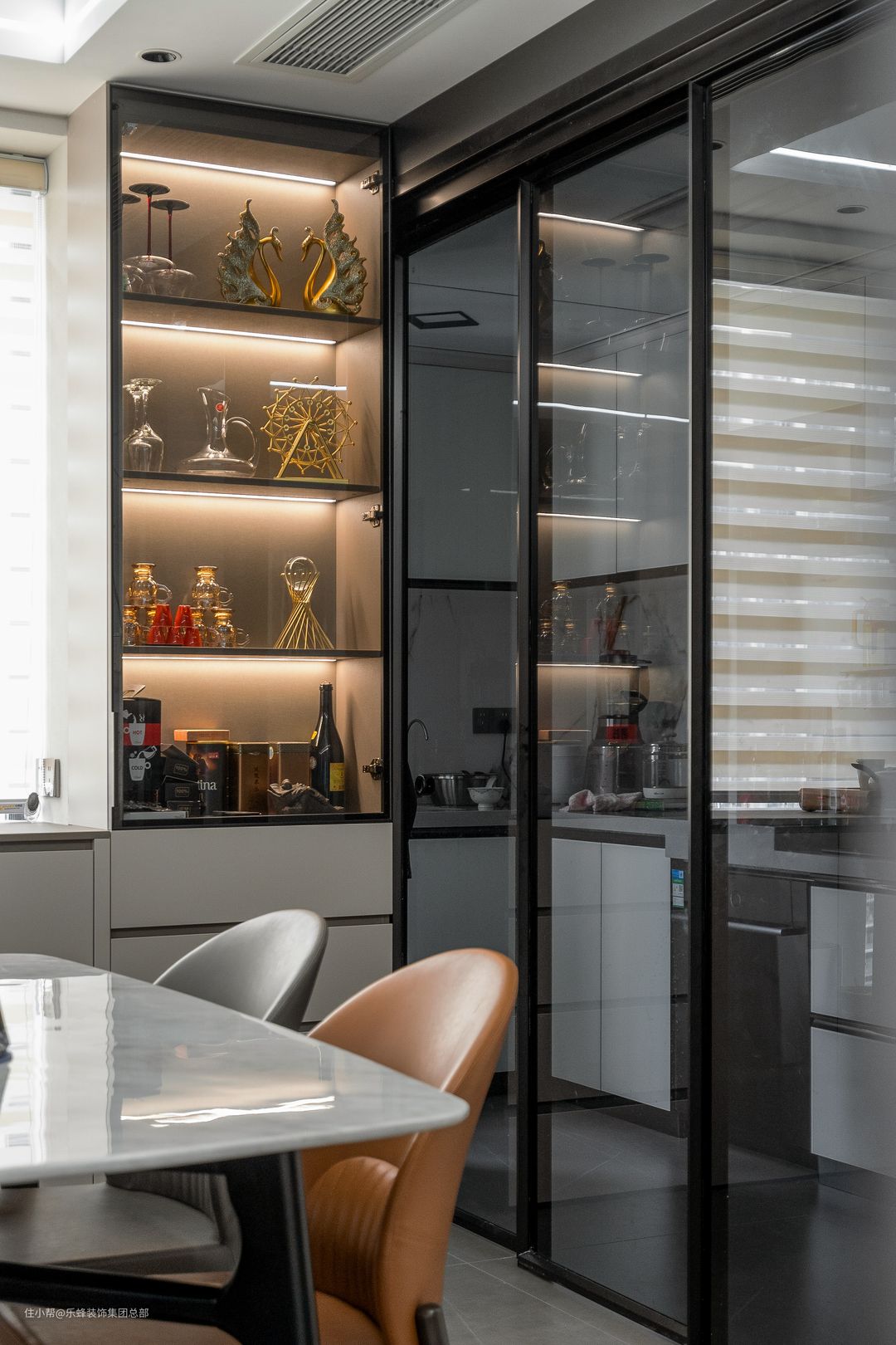 玻璃柜门可以很好地展示物品,也不用担心会沾染灰尘。