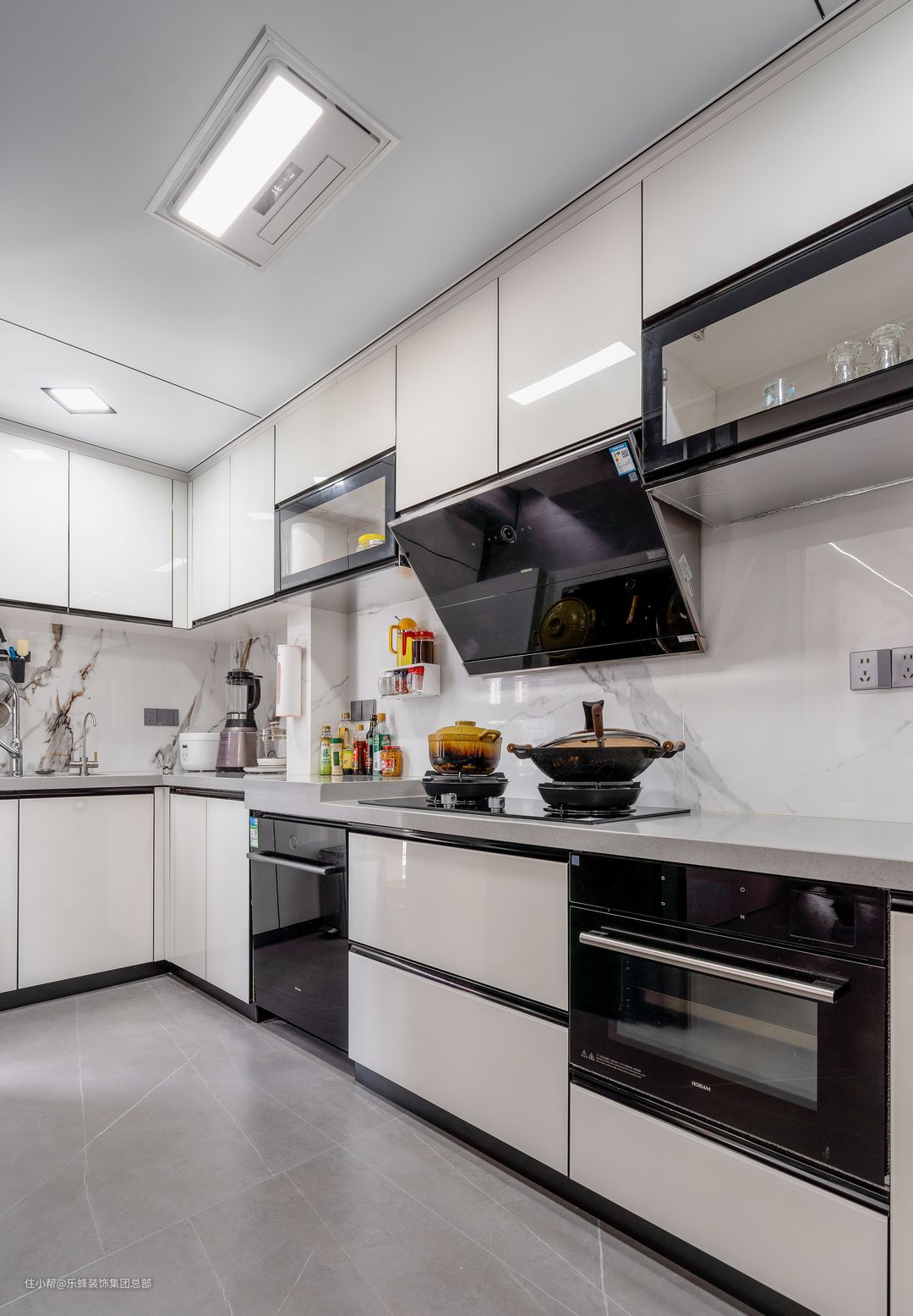 为了节省其他空间,将洗碗洗和烤箱都嵌入了橱柜,一体化设计除了能让下厨更加便利,还能节约空间。