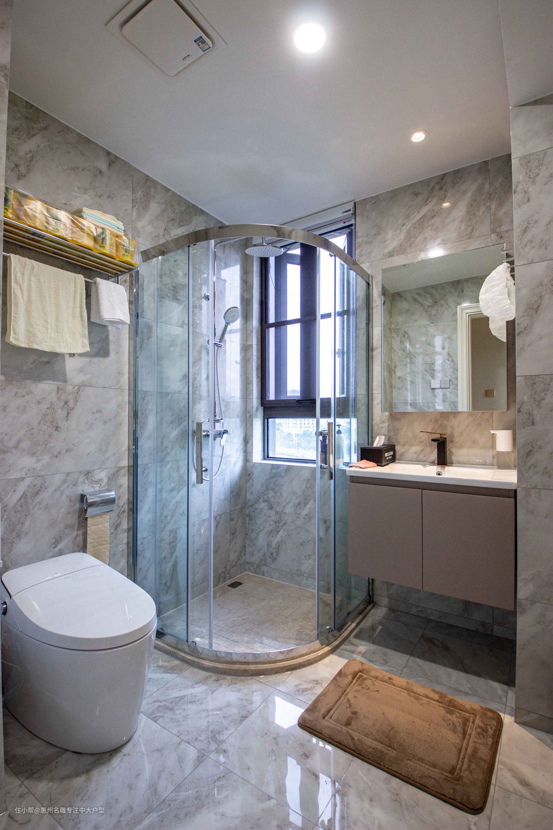 干湿分离设计与防滑槽地板处理,使得卫生间空间得到合理划分与利用,并满足一定功能需求,简约的空间设计使得整体美观度得到保证。