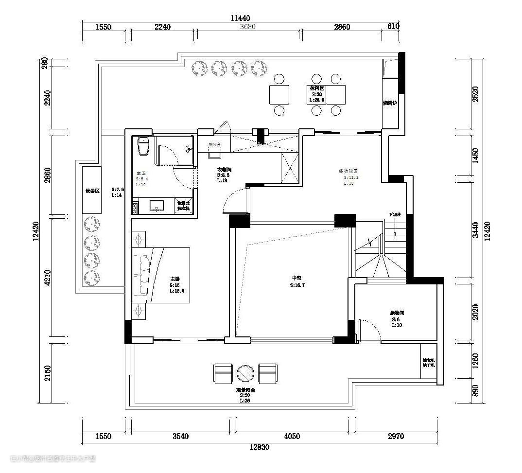 本案二楼拥有优渥的视野,设计师充分考虑此要素,增设2处露天观景休闲区,好的家居建筑,需要同“自然”建立恰如其分的联系。