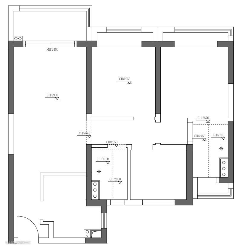 原户型缺点: ①门厅处视野较窄,玄关需要足够的储物空间; ②厨房太小,视觉紧凑,且和客餐厅完全隔断,没有互动空间; ③主卧面积比较紧凑,没有充足的储物收纳。