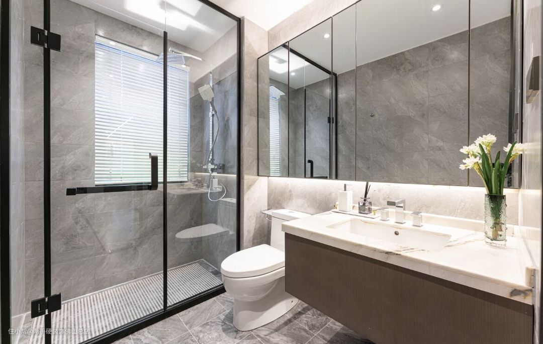 卫生间采用了大尺度的镜柜设计,这样做不仅增加了储物空间,同时在视觉上加大了空间尺度感。