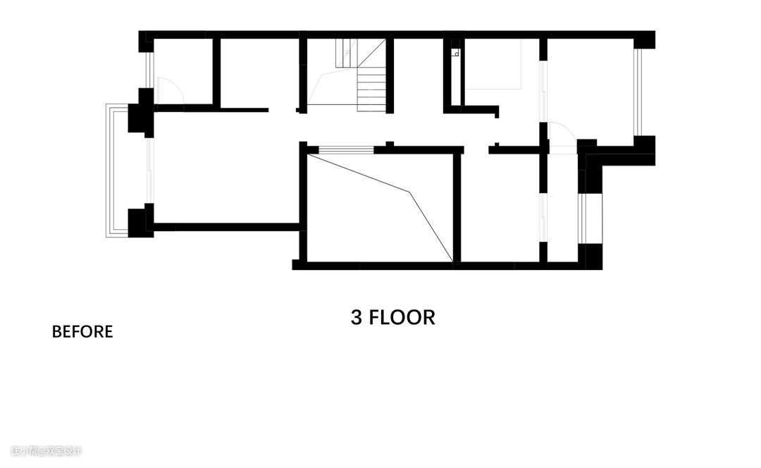 卧室原户型格局方正,但面积较小。设计师将整个三楼解构重组成一个空间大、功能齐全的主卧套房和一个小套房。优化布局后,主卧室的休息室-衣帽间-卫浴三者动线顺畅,贴合屋主洗漱-更衣-休憩的生活动线,让屋主最直观的居住体验更加良好。