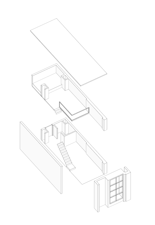 住宅设计为两个结构,由层高4.5米一层客餐厅和上层的开放式走道相互连接。