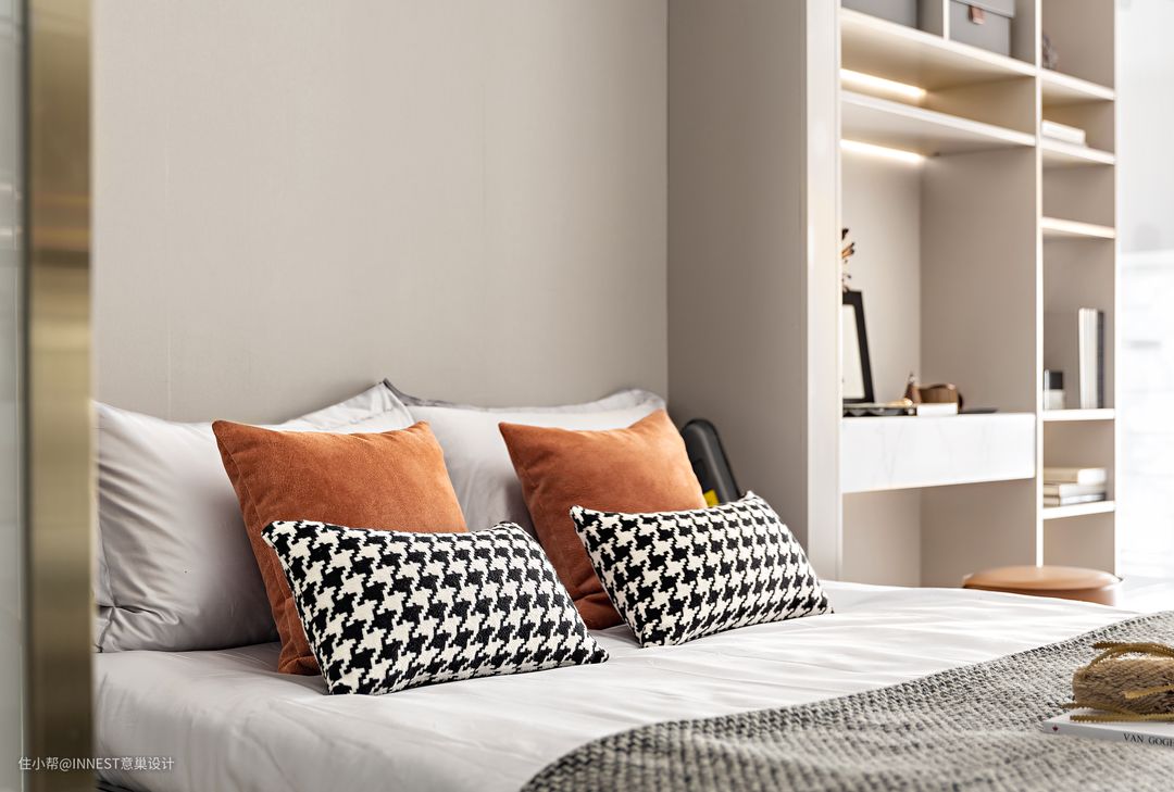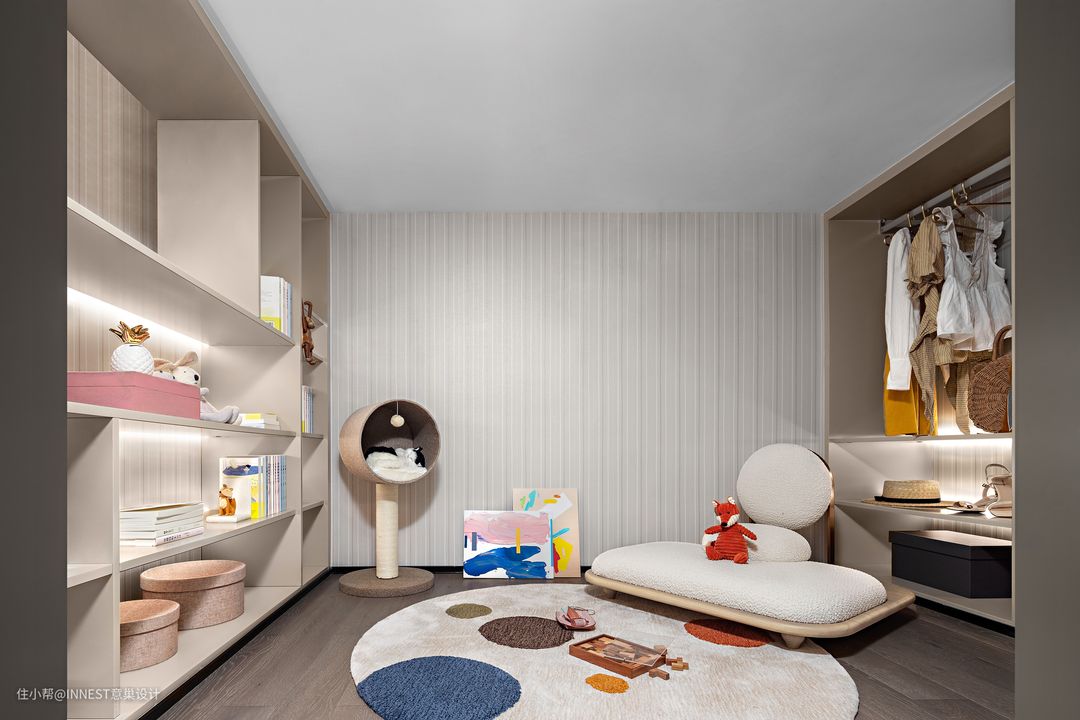 二层卧室增加收纳墙保证一家人的收纳需求,同时配套化妆台也做的非常精巧。