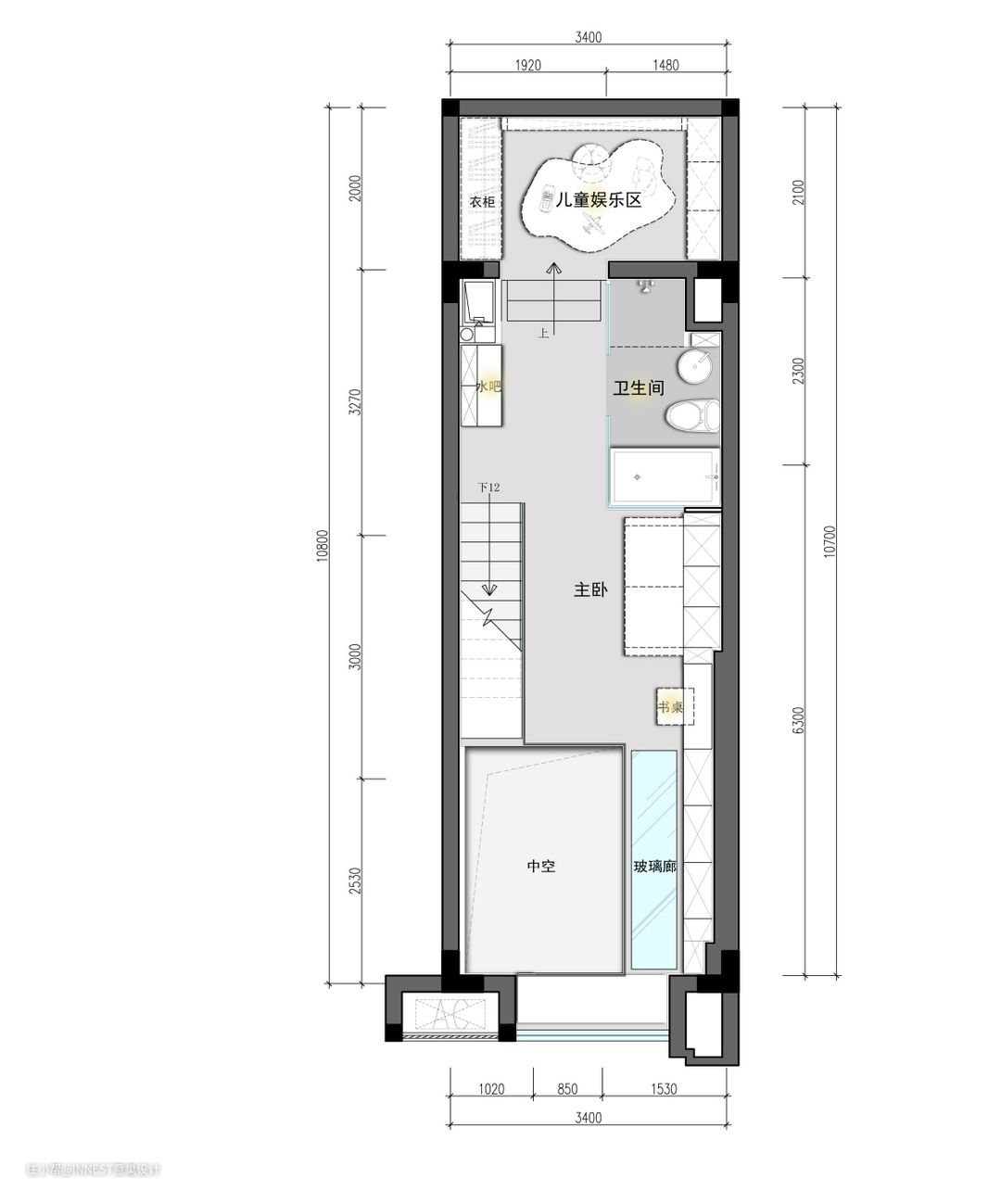 儿童娱乐区,在小两口还没有孩子前能当书房或者猫房,以后还以做亲子娱乐区。