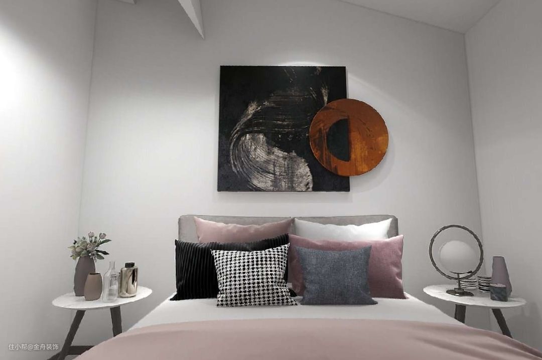 卧室的设计,以舒适度为宗旨,一株淡雅的绿色植物,表现出主卧的简单、细腻、素雅,赋予卧室独特的个性;灰色软床,考虑面积的同时,最大限度的照顾了睡眠舒适度,顶天立地的衣帽间,采用浅色柜门,担心玻璃柜门太过通透,视觉上带来凌乱感,设计师取消了玻璃门的使用,阻挡了凌乱感,通顶的方式又增加通透性。