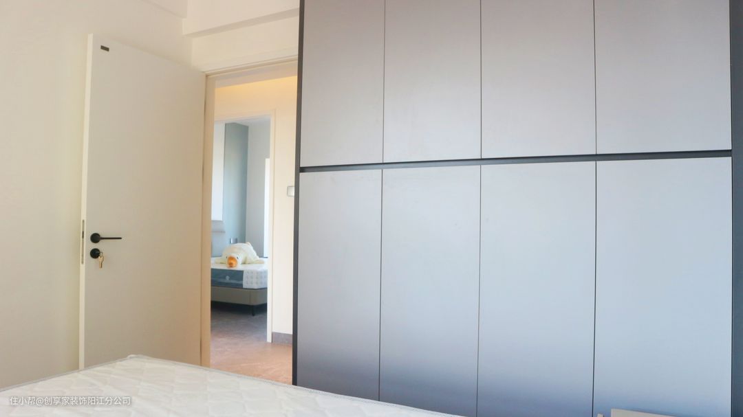 ● 第二个次卧用高级灰打造隐形把手衣柜,保持空间的平整度。 次卧②↓↓↓