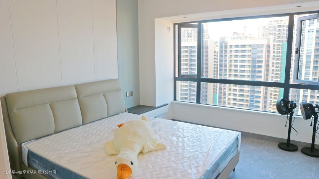 ● 主卧的设计比较简约,同样沿用白色系客厅的风格,用白色木饰面和白色的衣柜打造一个纯白的世界; ● 窗台的位置预留40公分左右的墙体,嵌入窗户,给整个房间增加自然光线,还通风透气!