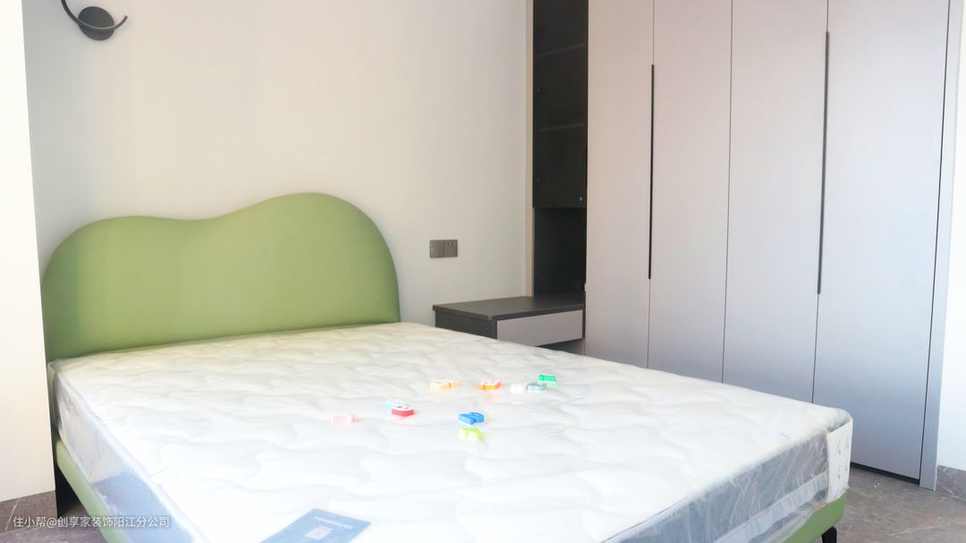 ● 第一个次卧面积比较小,放不下多余的桌子,因此在定制衣柜的基础上再打造出一个床头柜,大小刚刚好一平米左右,把空间利用到最大化! 次卧①↓↓↓