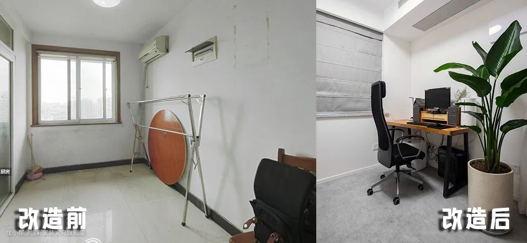 改造前: 杂物堆放,空间功能未作过多开发。 改造后: 为屋主的办公区域,客人来时也能留宿作为临时客房之用。