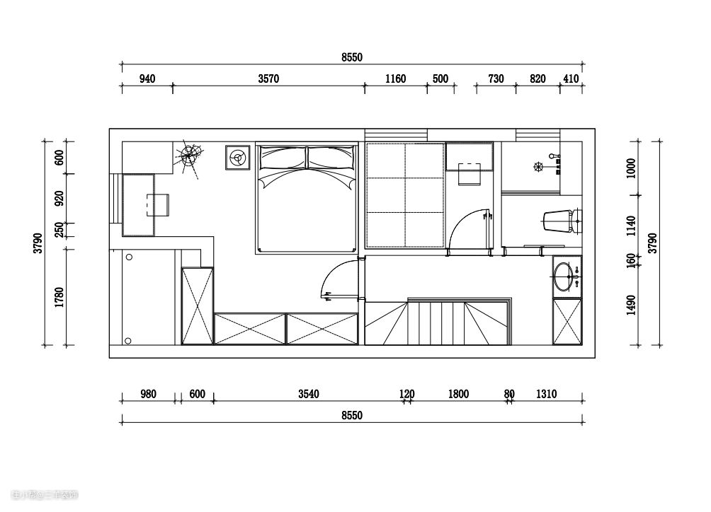 二楼楼梯上来便能看见二楼的卫生间,干区挪到外面。