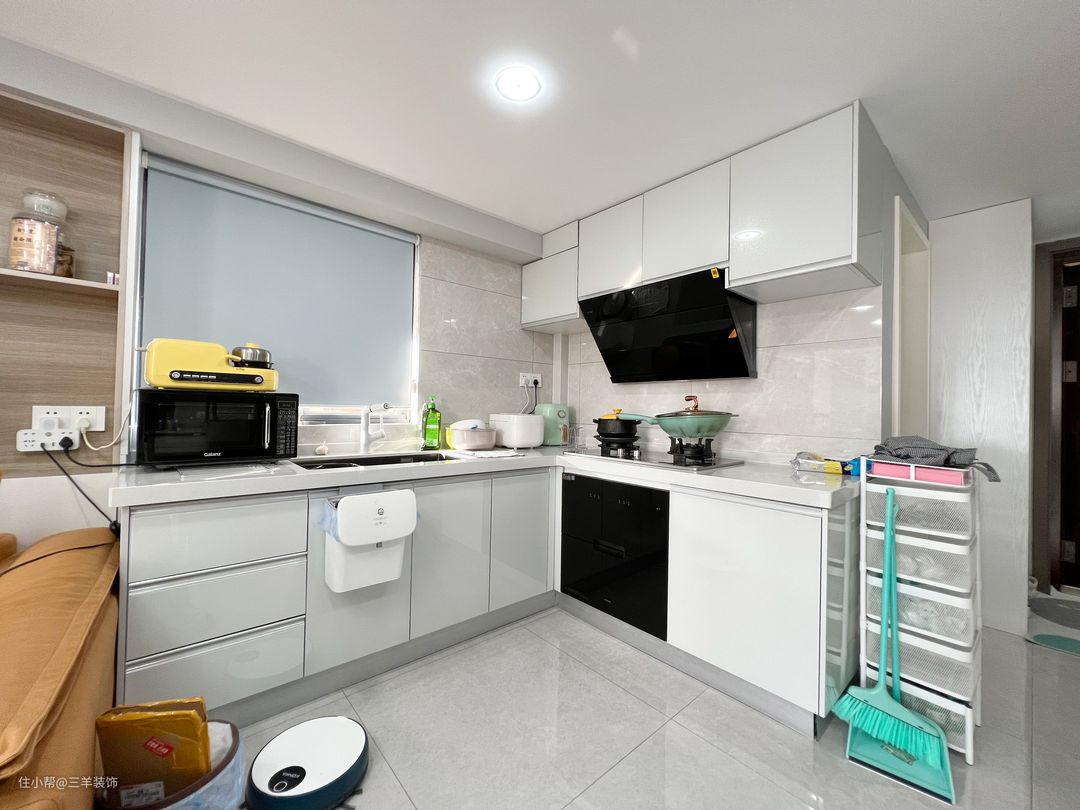 L型厨房布局,洗涤区、操作区和烹饪区相连,更符合日常烹饪习惯。