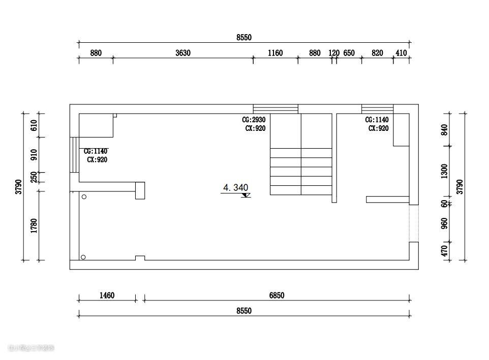 这套公寓原本楼梯口位置在客厅和厨房位置,经过设计师处理之后,将楼梯口的位置移到了入门口的位置。