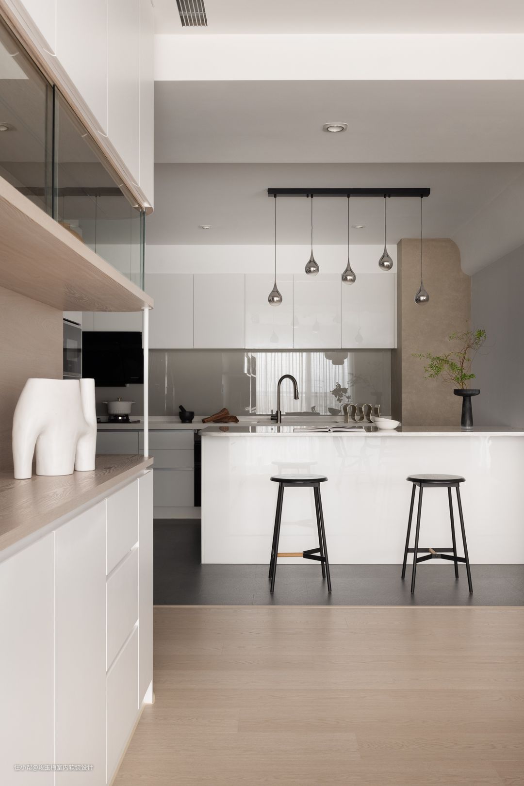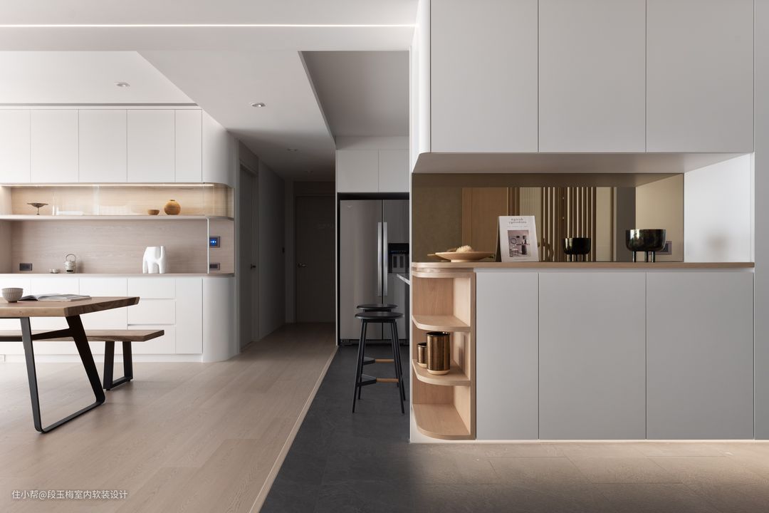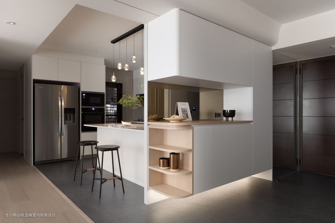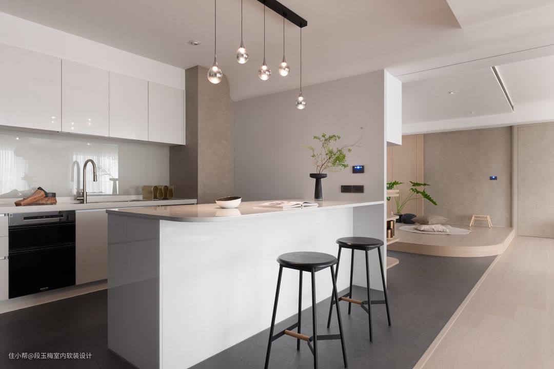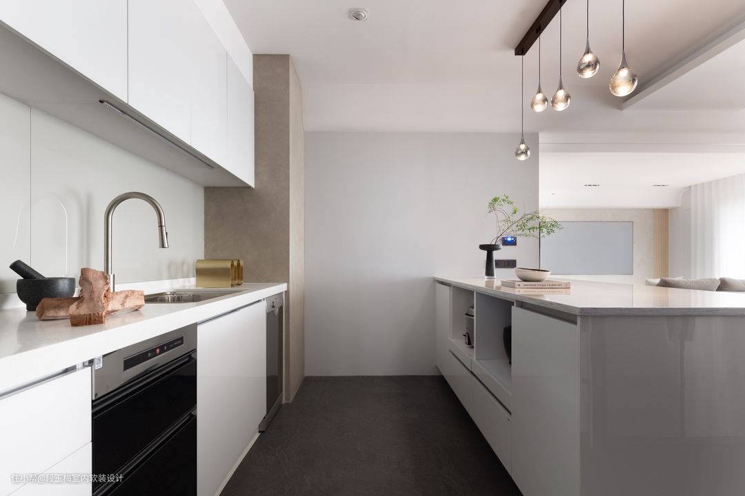 动线设计:厨房划分成中厨、西厨、岛台三个部分,多人进行烹饪也可以各司其职互不干扰。