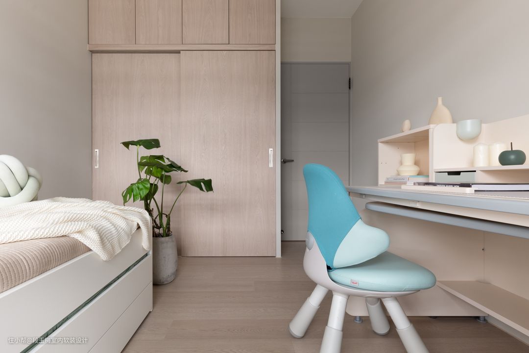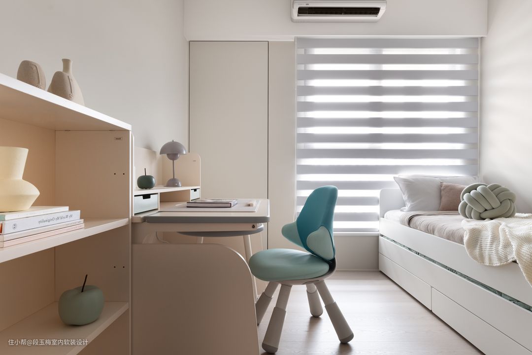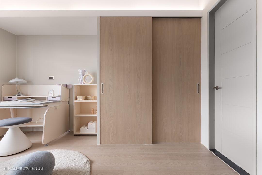 第一个儿童房采用上下床的形式,给两个女儿留出学习的空间。 第二个儿童房采用抽拉式上下床,下床可以给育儿嫂或者父母暂住。