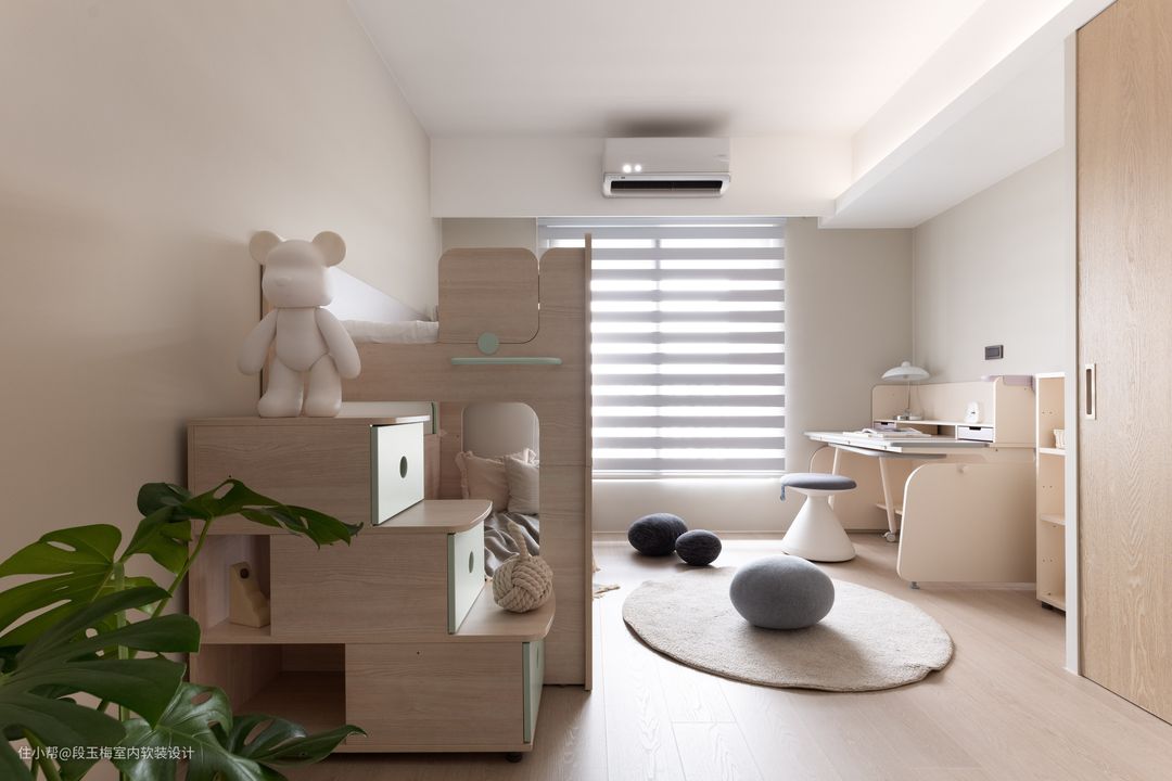 设计师给孩子还打造了150m的地台活动区,通过懒人沙发和儿童家具,可以让孩子拥有自己的活动天地。
