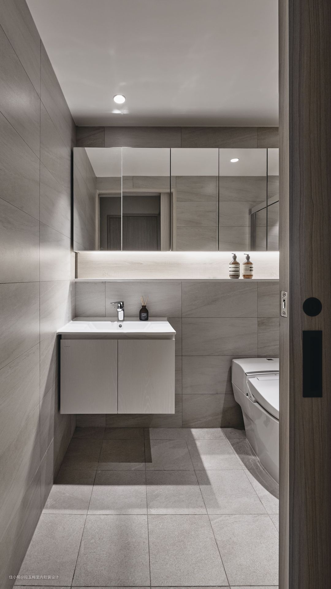 色彩:以灰色+咖啡色为主,落地效果很有质感。 干湿分离:干湿分离划分出马桶和洗手池的干区,和淋雨沐浴的湿区,便于清洁。
