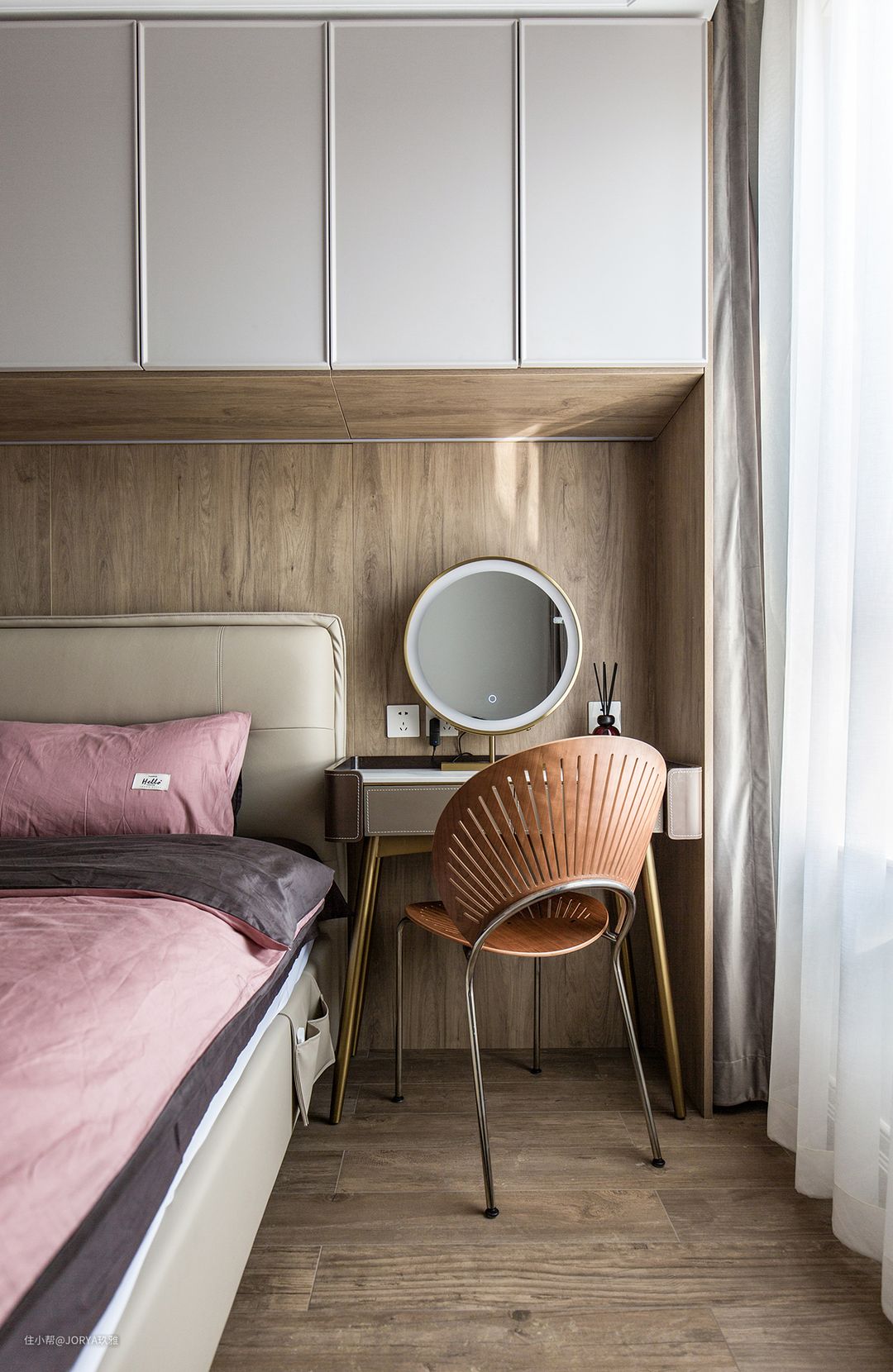 床头部分的柜体做了一圈木板包围,增加睡眠的“安全感”。
