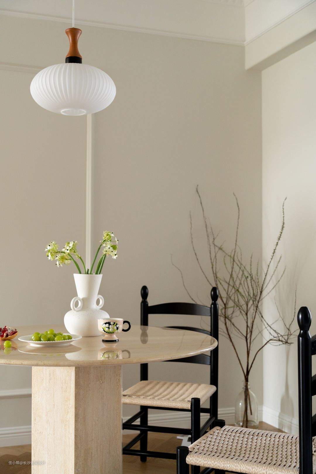 圆形大理石餐桌,弱化空间的局促感,为空间带来成熟沉静的质感,提升空间韵味