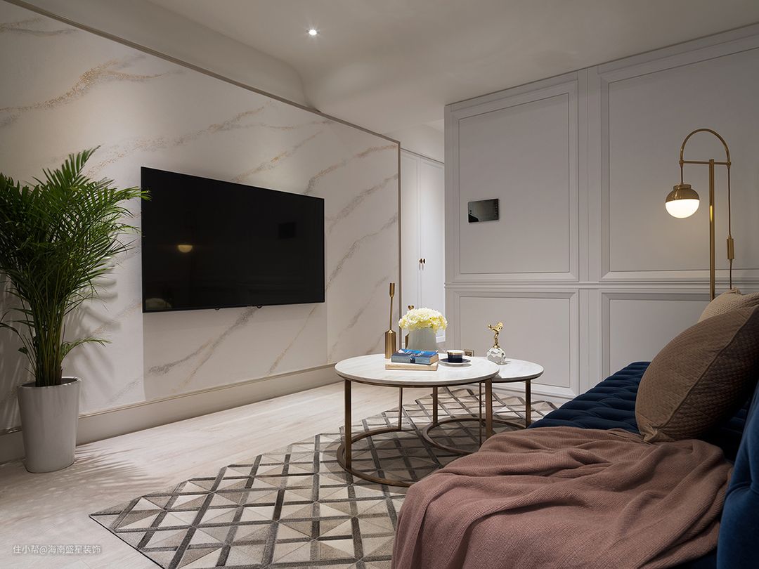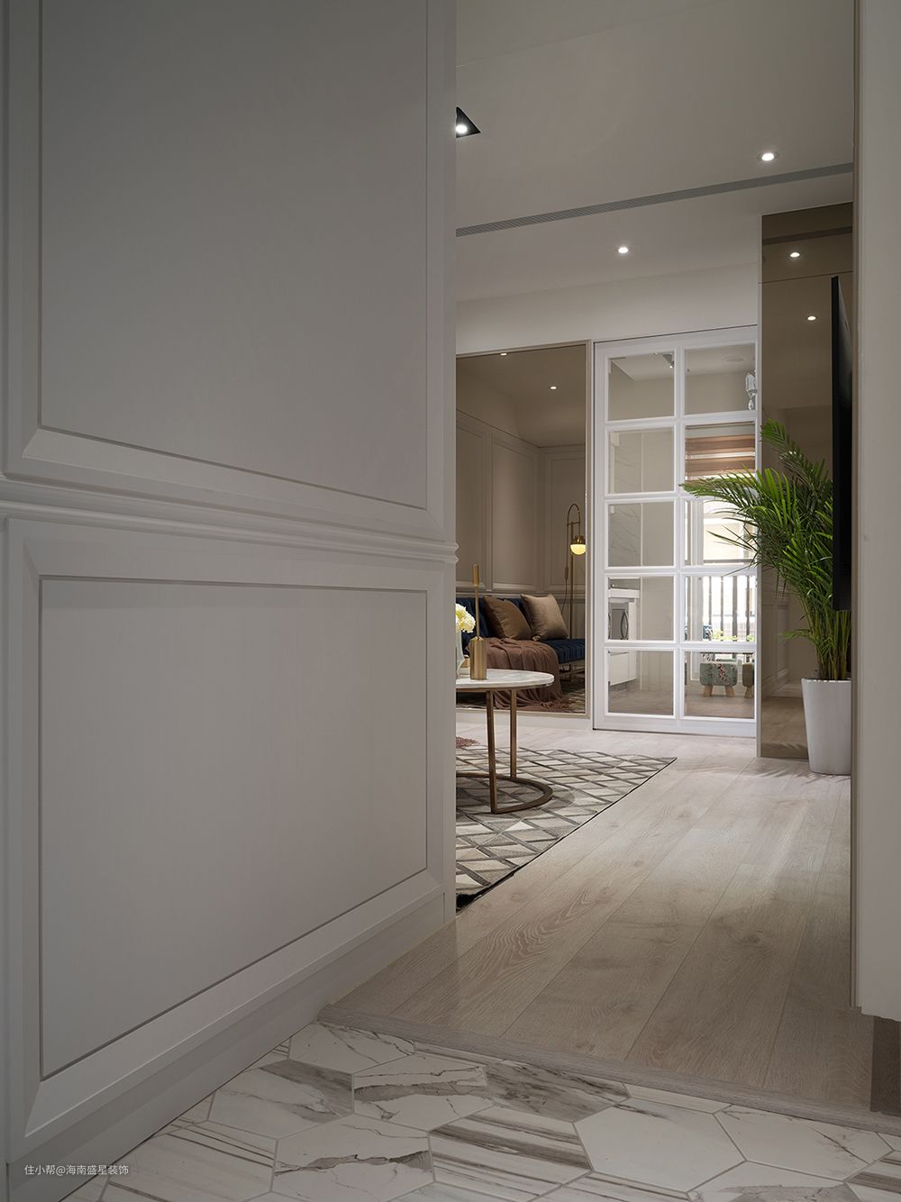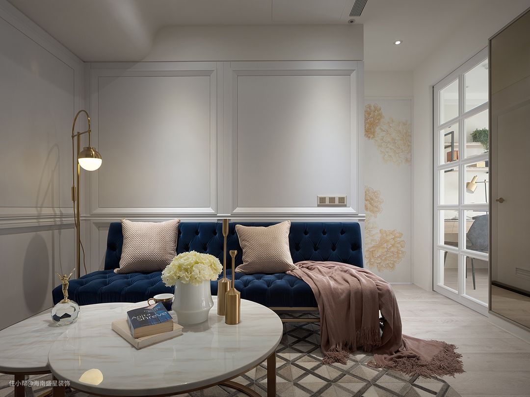 位在金海大厦的73㎡住所,原本是小3房格局,而这紧迫编排背离了夫妻俩从容无拘的性格,于是盛星装饰自格局着手,以玻璃引光、镜面放大,循序推进了自由的模样。 谈及设计脉络,设计师说,家即是生活的缩影,正如本案起笔,便是汲取自屋主夫妻浪漫过日的态度,并加以具象。 伴随线板、雕花与圆弧,接续叠增古典拉扣家具、金属细节,设计团队细腻拿捏了繁与简、古典与现代的平衡,才谱出专属两人的唯美光景。从此,沐浴光下,用一杯红酒、一本书,还有你的相伴,静看日月轮转;生活不过如此,别无所求。
