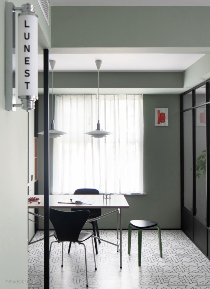 客厅整体墙面选用清新的灰绿色调,给人一种清新自然的感觉