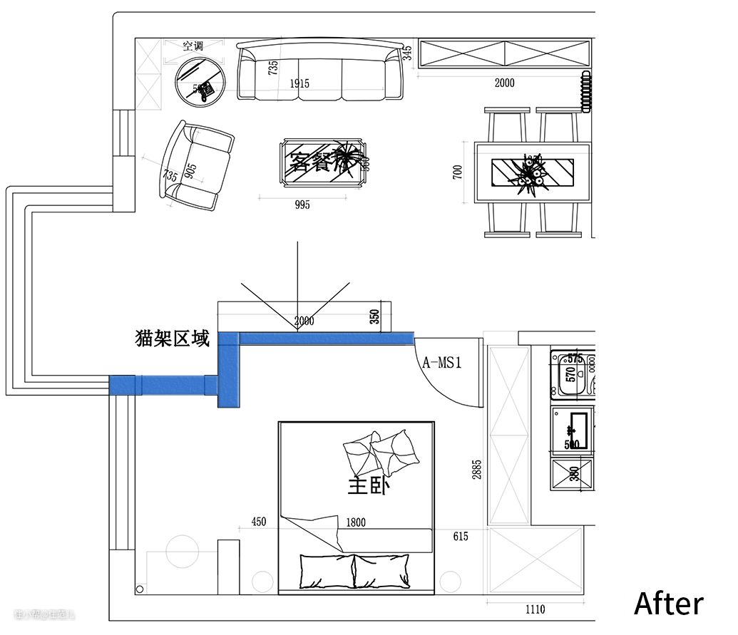 除了硬装上的改动,史先生还在家里布置了智能家居: ● 利用智能开关控制空调; ● 灯具采用感应式设计,人靠近或者下班回家开门时即刻亮起; ● 检测到无人活动时,自动关闭家里的灯具和电器; ● 猫咪进入猫砂盆后,卫生间里的排风扇会自动开启。